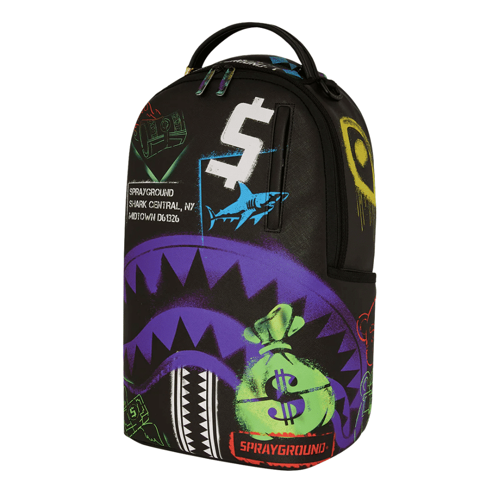De Sprayground Shark Central Stencils Rugzak geeft de iconische haaientanden een ruwe, graffiti-geïnspireerde stencil-look. Dit design combineert street art met luxe functionaliteit van de DLX-lijn. Vervaardigd uit waterbestendig PVC, biedt deze rugzak een gevoerd 15″ laptopvak, een krasvrij zonnebrilvak en een geheime Stash Pocket. De ultieme tas voor de stedelijke ontdekkingsreiziger.